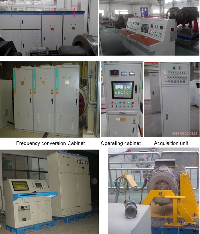 The test bench should be composed of a microcomputer system, a console, a power cabinet, a frequency converter, an electrical instrument, a sensor or a measuring instrument.