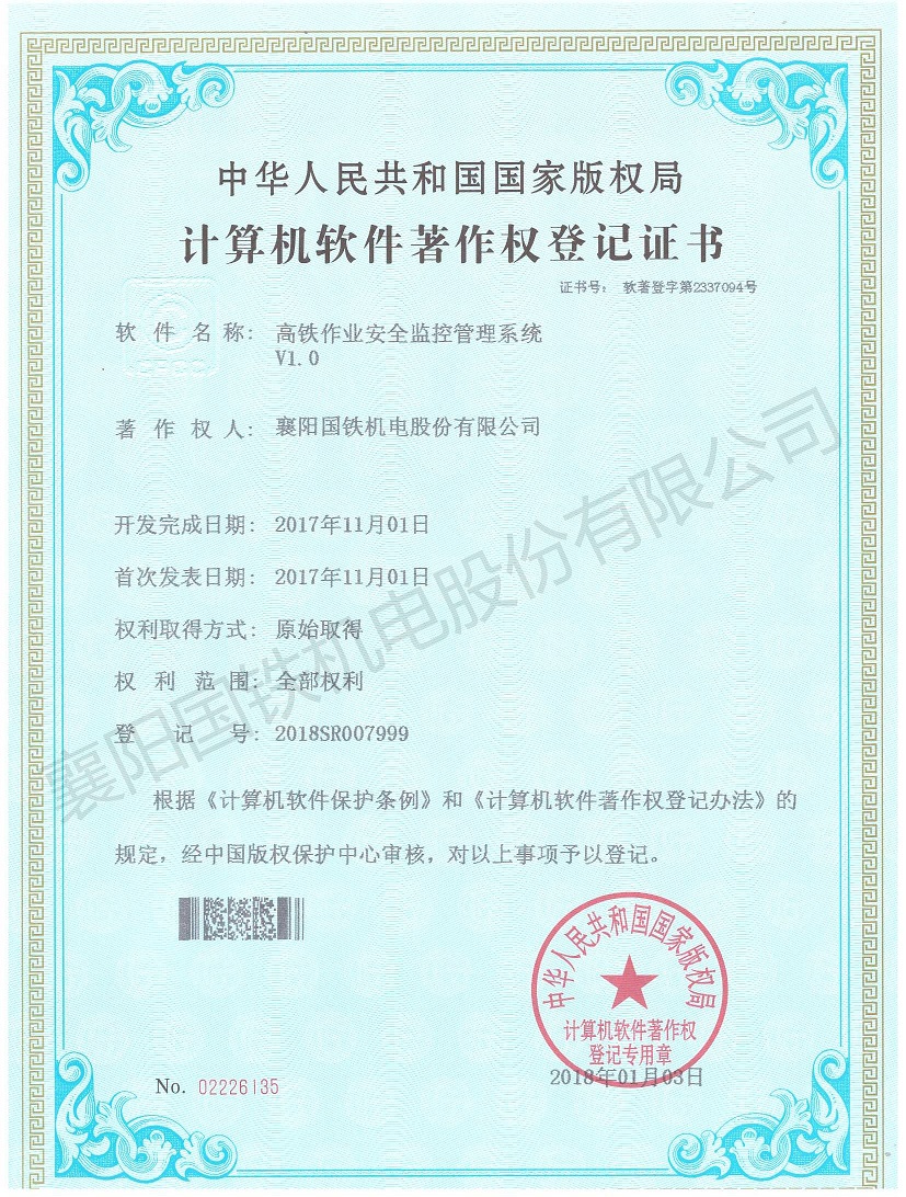 高鐵作業(yè)安全監(jiān)控管理系統(tǒng)(軟件著作權(quán)證書(shū))