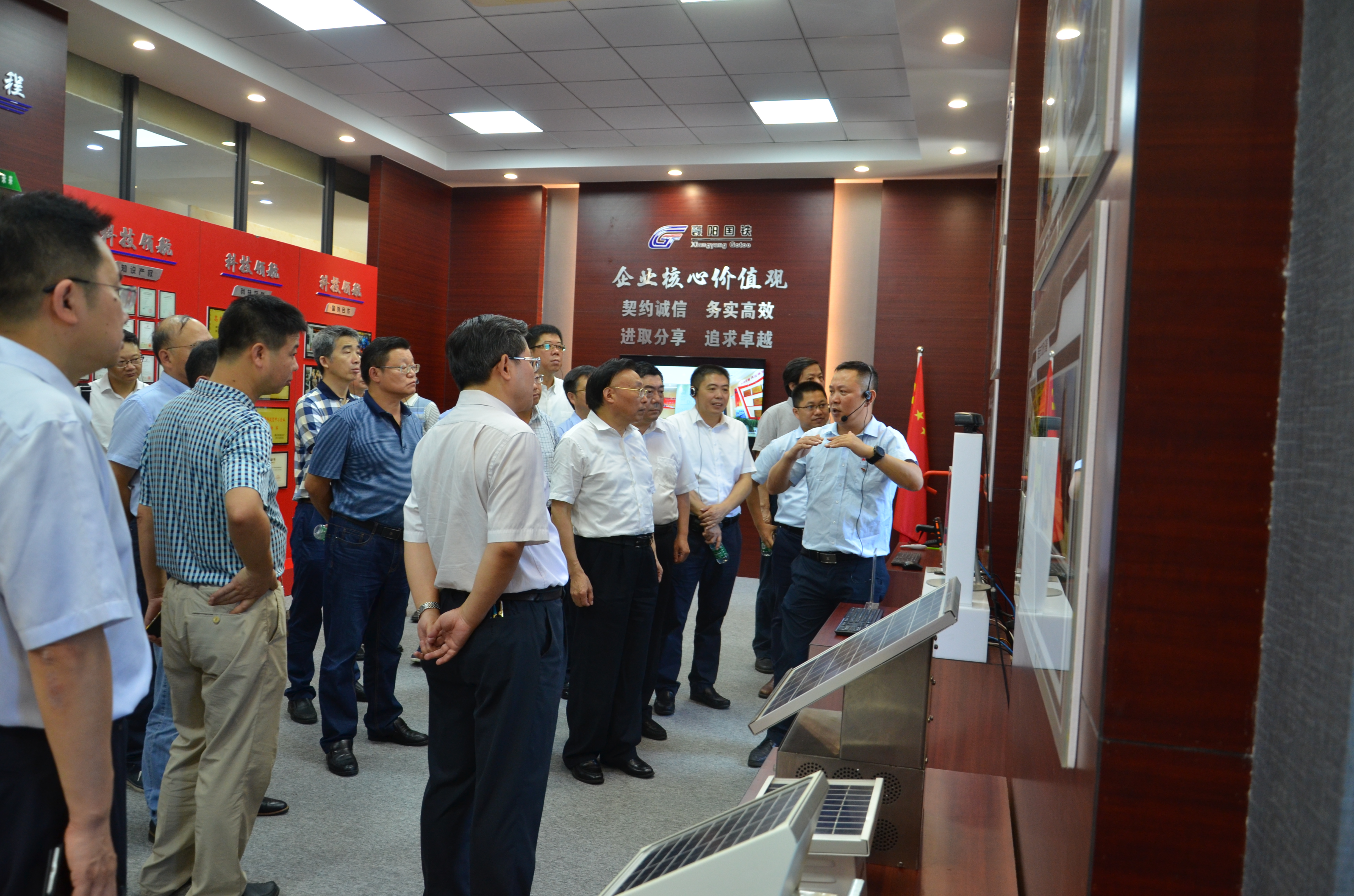 張清杰校長(zhǎng)、李德璋副市長(zhǎng)等一行首先參觀了公司展廳,曾建勇董事長(zhǎng)介紹了公司“產(chǎn)品創(chuàng)新”、“國(guó)際合作”、“企業(yè)文化”等方面的情況。張清杰校長(zhǎng)對(duì)我公司自主研發(fā)的“軌道交通信息化管理系統(tǒng)”給予了高度的贊賞,李德璋副市長(zhǎng)稱贊襄陽(yáng)國(guó)鐵是一家勇于創(chuàng)新的優(yōu)秀企業(yè),鼓勵(lì)公司繼續(xù)加強(qiáng)技術(shù)儲(chǔ)備,帶動(dòng)全市軌道交通產(chǎn)業(yè)的發(fā)展。