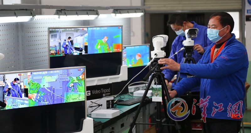 3月9日,在襄陽國鐵機(jī)電股份有限公司,工作人員正在調(diào)試熱成像快速測溫系統(tǒng)。本公司2月23日成功研發(fā)了熱成像快速測溫系統(tǒng),該系統(tǒng)可實(shí)現(xiàn)對進(jìn)出人員體溫檢測、人臉識別、實(shí)名制驗(yàn)證和考勤管理,可同時(shí)對30-50人進(jìn)行體溫快速檢測、篩查、報(bào)警。在疫情防控期間,本公司一天能夠生產(chǎn)30多臺設(shè)備,目前用于全市的疫情防控指揮部門、部分醫(yī)院及復(fù)工復(fù)產(chǎn)的企業(yè),下一步將投入到學(xué)校。