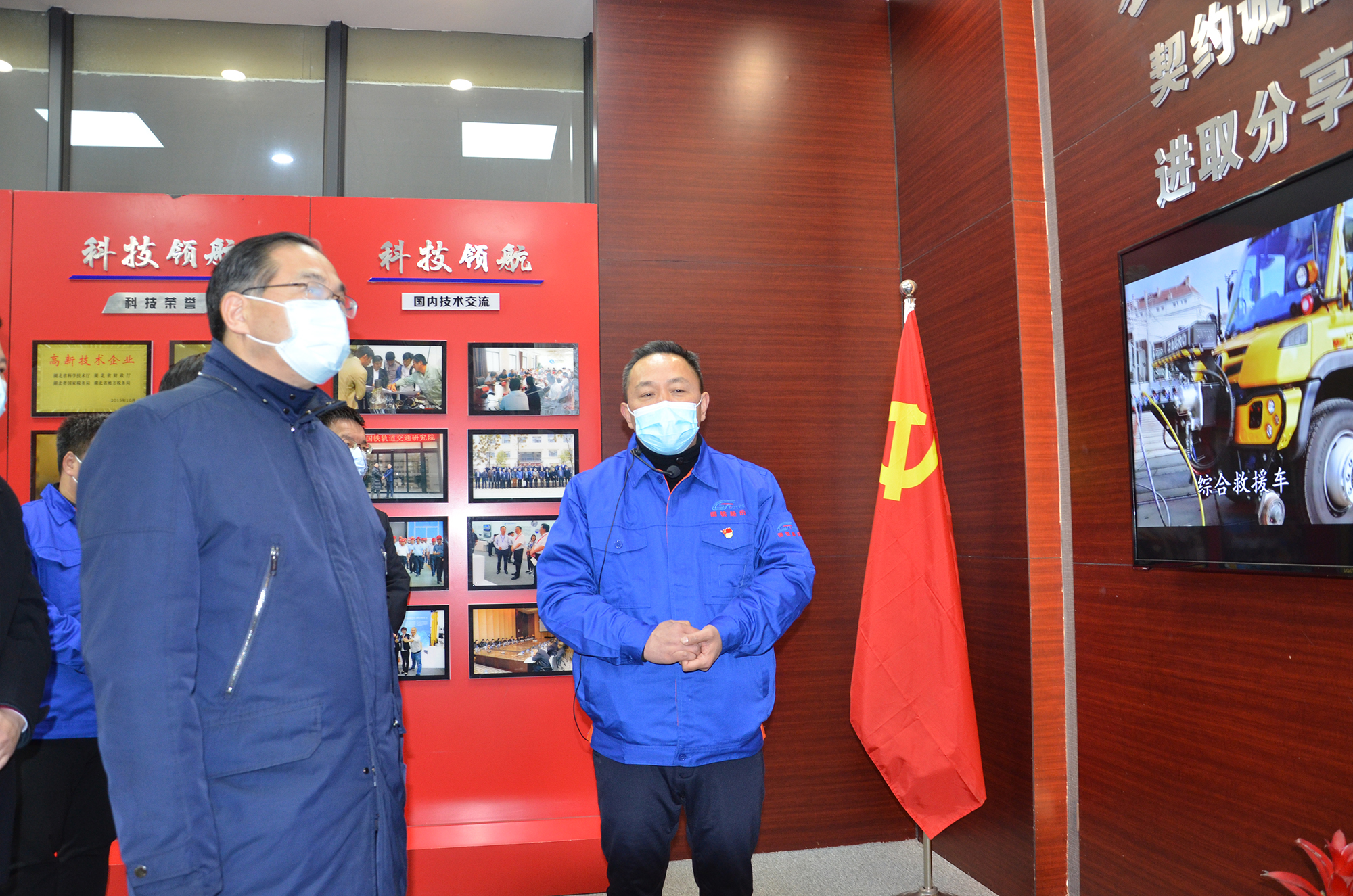 2022年2月8日,湖北省政協副主席、襄陽市委書記馬旭明一行蒞臨調研襄陽國鐵機電股份有限公司,重點了解企業的科研實力及發展狀況。襄陽國鐵機電董事長曾建勇為馬書記介紹了公司的行業領軍產品——公鐵兩用綜合救援車、檢測車及系列工程車和公司未來在軌道交通運維高端智能裝備領域的發展規劃,對馬書記一行親臨企業了解企業的困難和需求表示衷心的感謝!